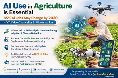 key words:  AI, Use in Agriculture, Essential, 85% of Jobs May Change,2030, VTU Vice-Chancellor S. Vidyashankar